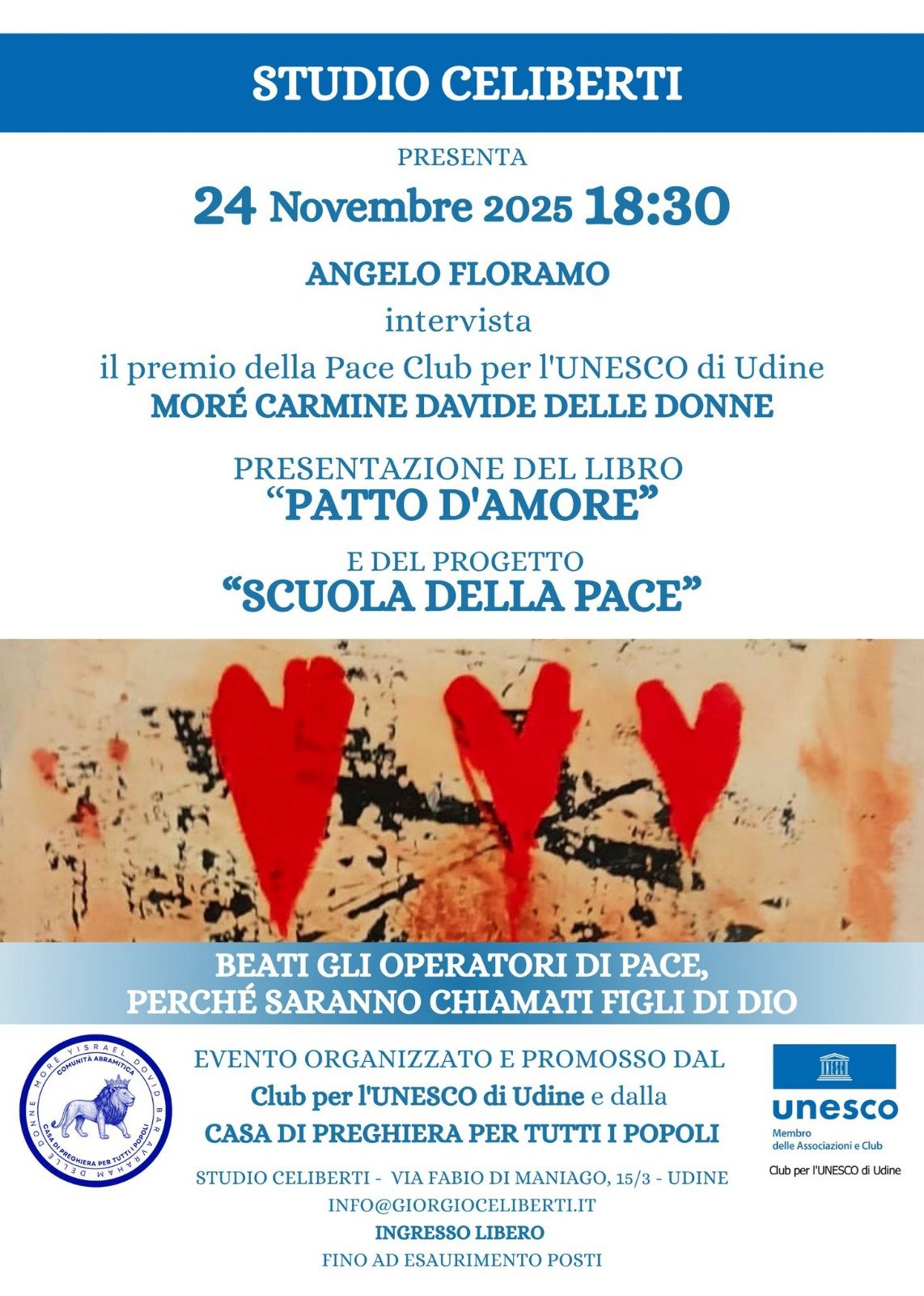 L’evento è organizzato e promosso dal Club per l’UNESCO di Udine e dalla Casa di Preghiera per Tutti i Popoli, in collaborazione con lo Studio Celiberti.