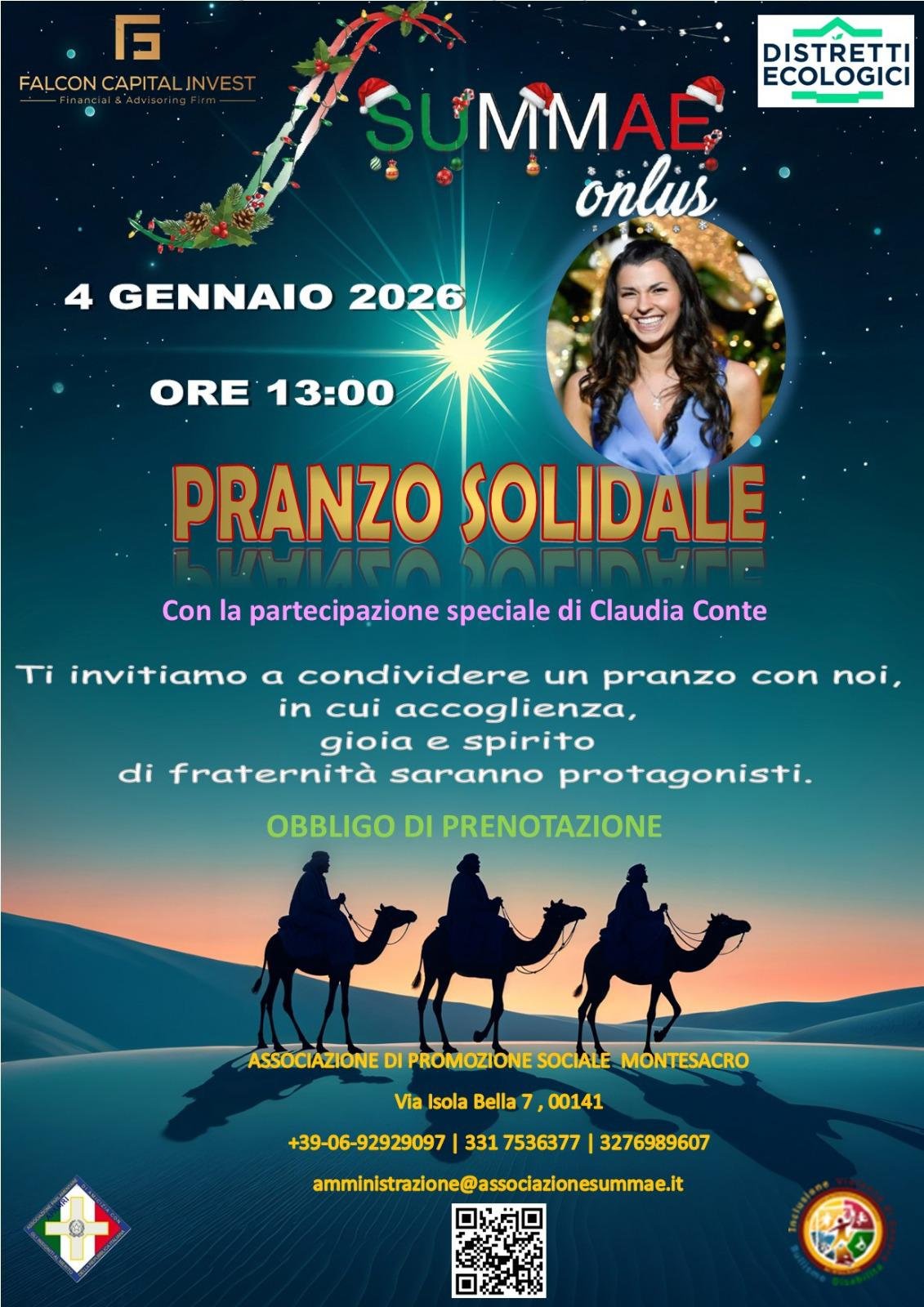 AISC News.. Si terrà il 4 gennaio, nel quartiere Montesacro a Roma, il Pranzo Solidale della Befana, evento conclusivo dell’intenso programma di iniziative solidali promosso dall’Associazione Summae Onlus, presieduta da Francesco Sarcina, a sostegno delle famiglie in difficoltà e delle persone senza dimora del territorio.