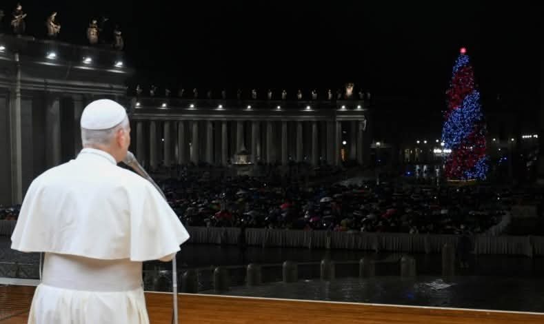 Papa leoneXIV, a sorpresa, prima della messa della notte di #Natale, nonostante la fitta pioggia, è uscito in piazza San Pietro per salutare i tanti fedeli presenti che non sono riusciti ad entrare: “Grazie per esseri venuti anche con la pioggia! Tanti auguri a tutti!. Vogliamo celebrare insieme la festa di Natale, Gesù Cristo che è nato per noi ci porta la pace, ci porta l’amore di Dio tanti auguri a tutti voi, Dio vi protegga e vi benedica tutte le vostre famiglie”.