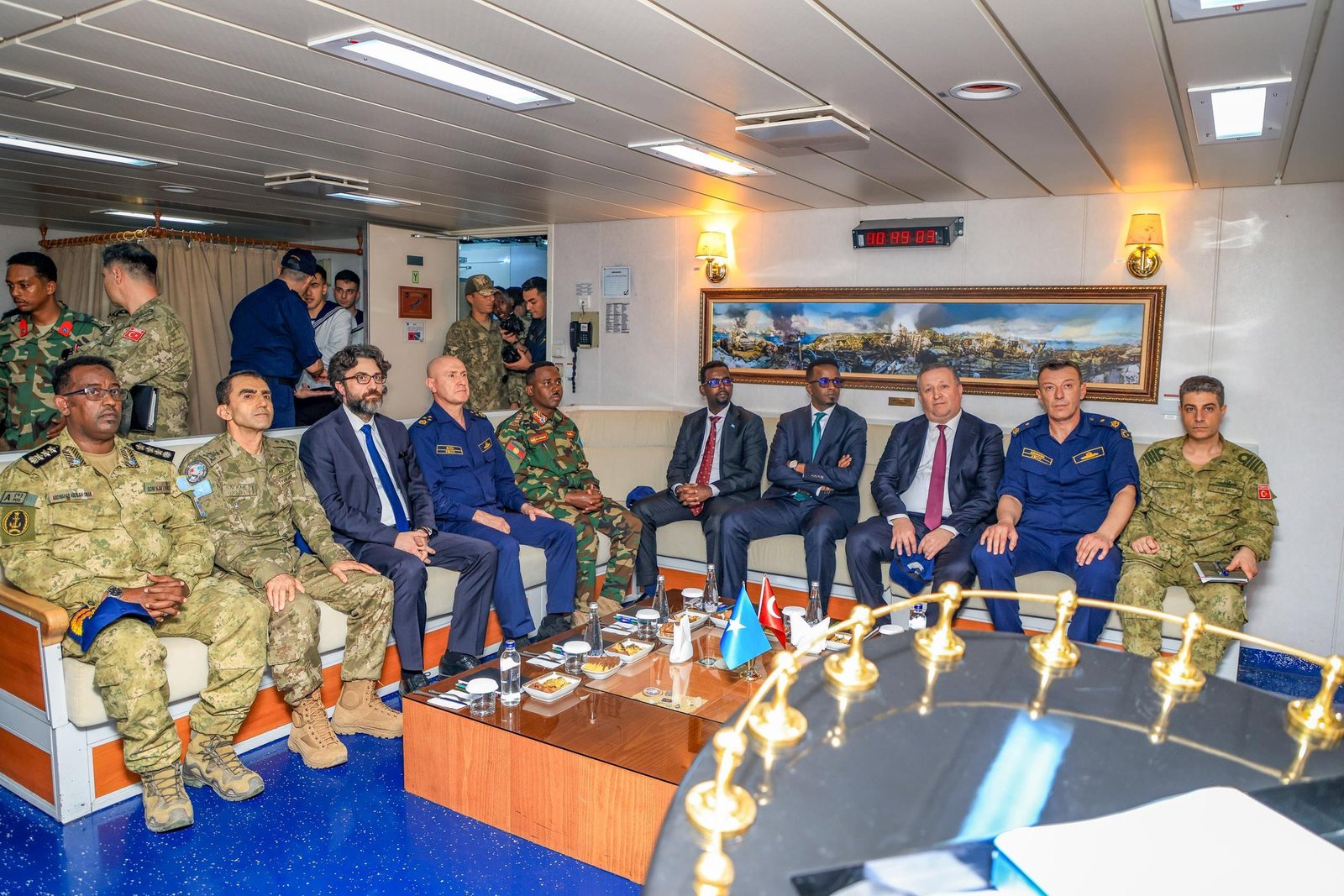 Funzionari somali hanno inoltre visitato la nave turca “Sangaktar”, giunta a Mogadiscio nel quadro di una cooperazione militare sempre più intensa tra Ankara e la Somalia. Secondo i media locali, la Turchia avrebbe inviato regolarmente anche armi pesanti nelle ultime settimane, coincidenti con la presenza del vice comandante della Marina turca nella capitale.